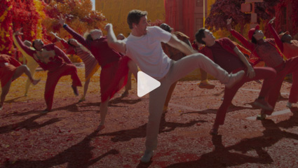 A person dancing while wearing AirPods 4.