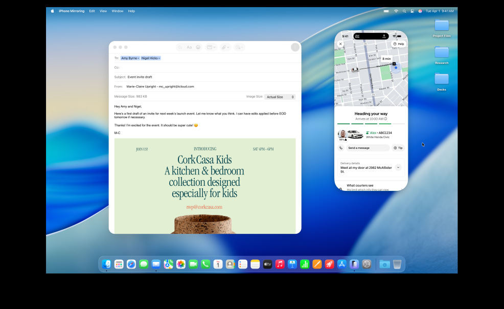 El Mac, el iPhone, el iPad y el Apple Watch ya son increíbles por su cuenta. Pero al usarlos juntos, se lucen mucho más. Gracias a Continuidad, tus dispositivos trabajan en equipo con total fluidez para que puedas acceder a un mundo de funcionalidades espectaculares. Empieza a escribir un email en tu Mac y termínalo en el iPad. Saca una foto en tu iPhone para verla al instante en el Mac. O haz llamadas sin tener que usar el iPhone.1 Todo gracias a Continuidad.