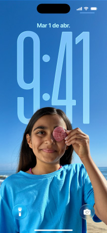 La hora se adapta a tu foto de fondo y a las notificaciones, manteniendo siempre el enfoque en el sujeto. Al mover tu iPhone, la foto cobra vida gracias a un nuevo efecto 3D.4