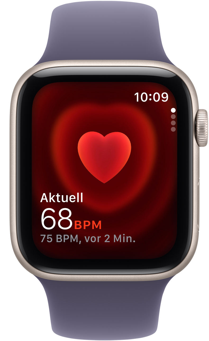 Behalte deine Herzfrequenz mit der Herzfrequenz App jederzeit im Blick. Und erhalte Mitteilungen bei hoher oder niedriger Herzfrequenz oder bei einem unregelmäßigen Herzrhythmus.11