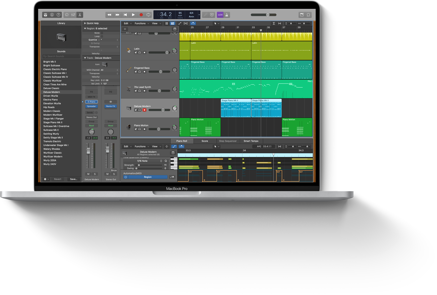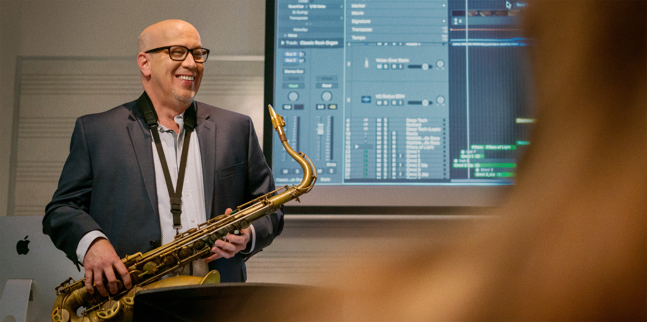 MacBook Pro. The all-in-one professional tool Hughes trusts to prepare burgeoning creators and producers for successful careers. Logic Pro on Mac serves as the foundation for his entire music and sound design curriculum. Students learn to record, edit, and mix all kinds of music with a pro-level sonic palette — and create pro-level portfolios to prepare for the music industry.