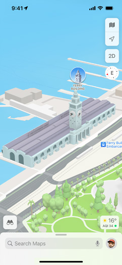 Explore San Francisco, Los Angeles, New York City and London — and more cities coming soon — with unprecedented detail for elevation, neighbourhoods, buildings, trees, and road features like pedestrian crossings and turn lanes. Visit amazing 3D landmarks like the Golden Gate Bridge in both the day and dark mode maps.