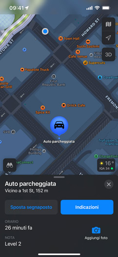 Gli orari del tuo bar preferito sono sbagliati? C’è un vecchio materasso in mezzo alla strada? Qualunque sia il problema, basta un attimo per segnalarlo in Mappe. Modifica e invia informazioni aggiornate su un’attività commerciale direttamente nella scheda del luogo. E segnala un incidente o un pericolo nel modo più facile e sicuro: dillo a Siri. Devi solo dire “C’è un incidente più avanti” o “C’è qualcosa in strada” e Siri registrerà l’incidente per te. E puoi anche segnalare a Siri se un incidente indicato sulla mappa si è risolto, senza togliere le mani dal volante e gli occhi dalla strada.
