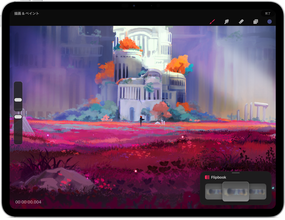 Apple Pencilを傾けて、グラデーションなどのエフェクトを追加。
