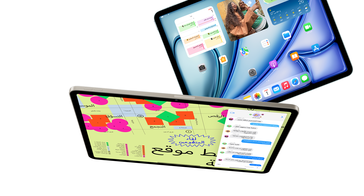 ‏‏iPad Air مصمم حول Apple Intelligence، وينبض بشريحة M3 فائقة السرعة تحلق بجهاز iPad Air إلى آفاق جديدة من الأداء الخارق.‏‏ فبفضل القوة الهائلة لوحدة المعالجة المركزية ووحدة معالجة رسومات الغرافيك والمحرك العصبي، ازدادت سرعته لتصل إلى 2x‏ أسرع مقارنةً بجهاز iPad Air مع شريحة M1.‏4 ومع بنية وحدة معالجة رسومات الغرافيك، ستستمتع برسومات غرافيك متطورة في كل ما تقوم به من عمل وإبداع ولعب ومشاهدة. أما البطارية فتواكبك طوال اليوم بكل طاقتها وكفاءتها.‏5