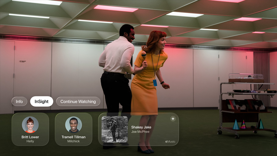 InSight. Get information about Apple Original series and films as you watch them. Just bring up the media player controls to learn more about the actors on the screen and the music that’s playing. The details automatically update as the scene changes. And when you use iPhone as the Apple TV remote, InSight information appears in the palm of your hand.5