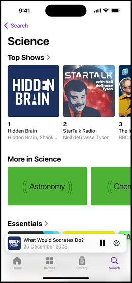 CarPlay lets you listen seamlessly from your iPhone in your car, bringing the same in‑depth experience to your vehicle’s built‑in controls.2 You can even ask Siri to play the latest episode or control playback. And Apple Podcasts comes pre-installed in selected car models.